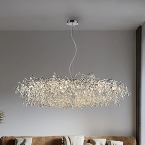 Lysekroner i metal, især dem, der er lavet af materialer som messing, krom eller rustfrit stål, har et moderne og alsidigt udseende. Afhængigt af overfladebehandling og design passer de til både minimalistisk og rustikt interiør. Antikke eller vintageinspirerede modeller af bronze eller smedejern passer perfekt ind i en rustik eller nostalgisk atmosfære og giver rummet et varmt, hyggeligt præg.