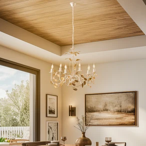 Lysekroner i metal, især dem, der er lavet af materialer som messing, krom eller rustfrit stål, har et moderne og alsidigt udseende. Afhængigt af overfladebehandling og design passer de til både minimalistisk og rustikt interiør. Antikke eller vintageinspirerede modeller af bronze eller smedejern passer perfekt ind i en rustik eller nostalgisk atmosfære og giver rummet et varmt, hyggeligt præg.