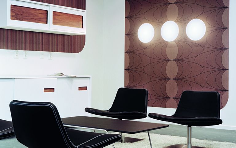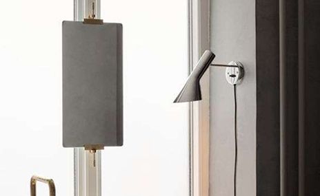 AJ-væglampens drejelige og svingbare lyshoved giver målrettet zonebelysning til sofaer, kommoder eller natborde.