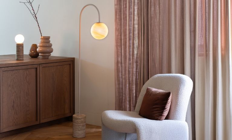 Sfæriske gulvlamper ligner moderne skulpturer og skaber elegante accenter i rummet som et designstatement - uanset om det er i stuen ved siden af sofaen, i soveværelset som blød zonebelysning eller i gangen som et stemningsfuldt blikfang. Modeller med glaskupler giver blændfri belysning og bader rummet i et behageligt diffust lys.
