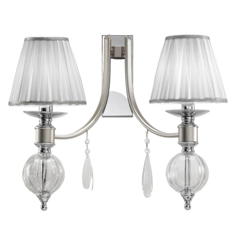 Væglampe 7330 med en elegant forkromet stel og to tekstilskærme