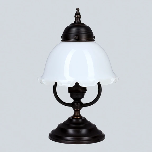 Karl-bordlampen: antik charme, rustikt look Klassiske designs og modeller fra omkring 1900 var inspirationen til Karl-bordlampen. Dens kendetegn er den elegant buede lampeskærm af mundblæst glas med en messingkrone og stellet med en særlig overfladebehandling. Det betyder, at man indfarver en patina i messingen i stedet for at male den. Det giver et udseende, som er næsten umuligt at skelne fra den originale patina på antikke lamper. En tør klud er at foretrække til rengøring, rengøringsmidler er tabu; en let glans kan opnås ved at tørre af med lidt olivenolie.
