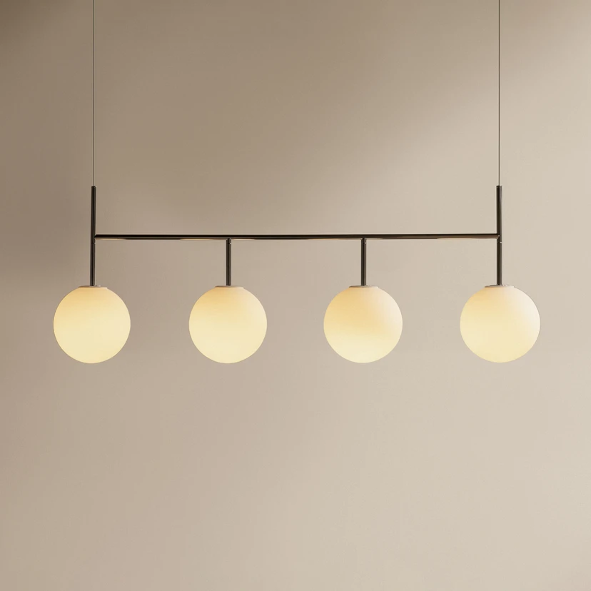 TR Bulb-pendel med fire lyskilder i opalglas TR Bulb Suspension Frame LED-hængelampen imponerer med sit minimalistiske look og klassiske farveskema. Metalrammen af poleret stål er aflang. Lampeskærmen er en rigtig allrounder, da den er lavet af opalglas af høj kvalitet og også fungerer som en diffusor, der sikrer en behagelig og blændfri fordeling af lyset. Rundles vision var at skabe et smart, alsidigt belysningskoncept, der tilpasser sig den moderne livsstil. Lyskilden skulle kunne monteres på forskellige armaturer og samtidig understrege design og atmosfære. Resultatet er det elegante, minimalistiske udseende af TR Bulb-serien, som kan integreres i næsten ethvert moderne interiør.