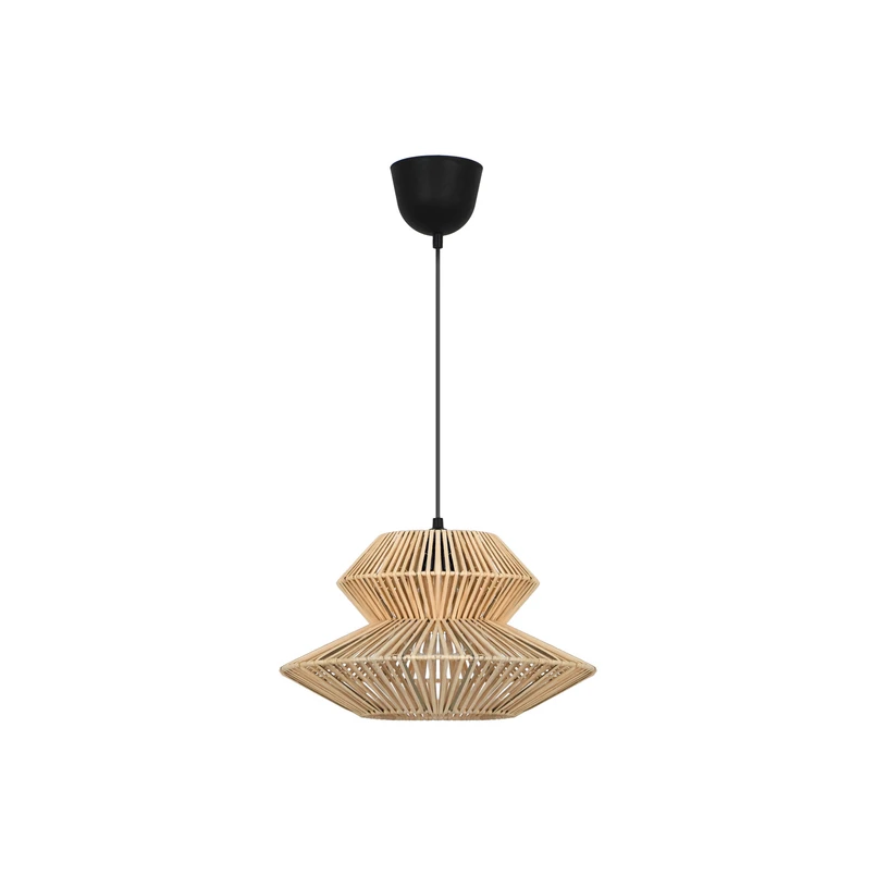 Bali pendel med æstetisk udformet rattan-skærm Skærmen på Bali pendlen består af to rattan-elementer, der er draperet over hinanden. Det naturlige look giver en følelse af hygge, mens skærmens struktur giver lyset fra pæren en særlig hyggelig nuance - eksternt dæmpbar