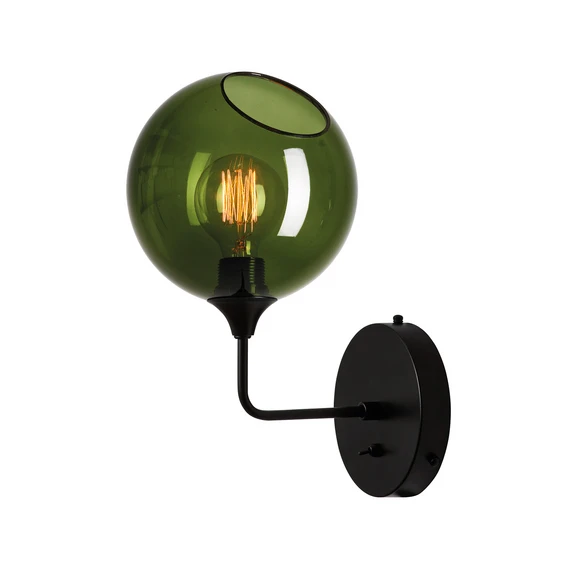 Ballroom Short væglampe med mundblæst glasskærm Ballroom Short væglampe er ideel til belysning over natbordet, i entreen, eller hvor der er brug for en smuk væglampe. Et vægbeslag i malet jern fungerer som base, hvortil den kugleformede skærm er fastgjort via en arm, der er bøjet opad i rummet. En afbryder (tænd/sluk) er integreret i beslaget, og selve skærmen er lavet af mundblæst glas. Indeni er der plads til en E27-pære (medfølger ikke, se tilbehør). En mat hvid pære anbefales også til den hvide version, mens en pære med synlige glødetråde bør vælges til alle andre farvevarianter, da pæren kan ses gennem glasskærmen. Ballroom Short er en fremragende tilføjelse til serien af samme navn fra DESIGN BY US og fungerer som et elegant designobjekt, selv når lyset ikke er tændt. Bemærk: Hver håndblæst glaslampe er unik. Inklusioner i glasset (bobler) på op til 0,5 cm i størrelse er mulige.