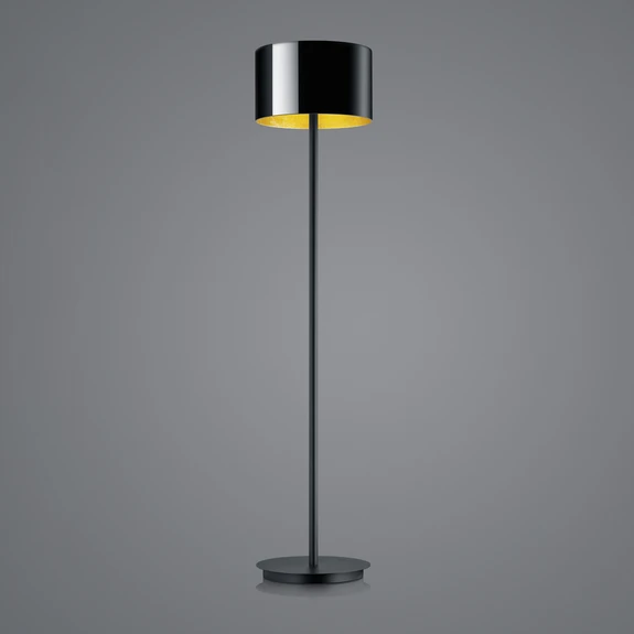 Navnet på LED-gulvlampen Luce elevata Grand antyder allerede, at der er tale om et armatur af særlig høj kvalitet. Producenten BANKAMP bruger betegnelsen "Luce elevata" til at beskrive de gennemtænkte armaturer i sin almindelige serie, og det er også tydeligt i dette tilfælde. Den sorte glasskærm er dekoreret i hånden med et bladguldslook.