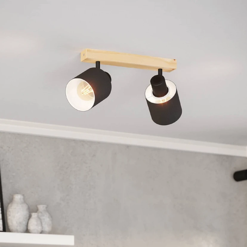 Batallas loftspot, længde 30 cm, sort/træ, 2 lyskilder.