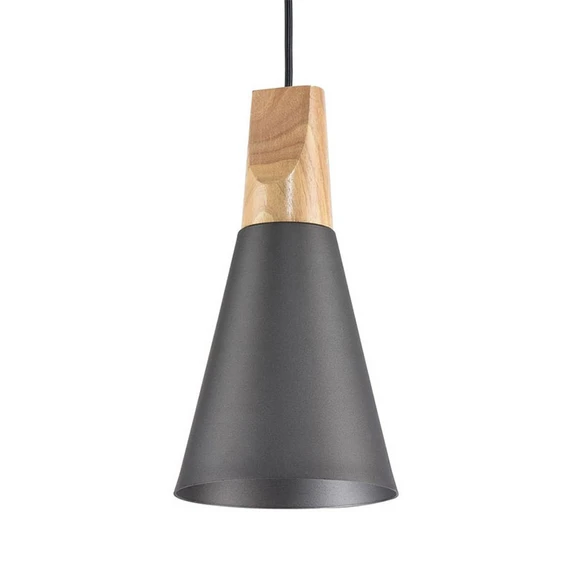 Den er perfekt til moderne bordbelysning - ophængslampen Bicones med sin tragtformede lampeskærm, der er åben i bunden. Dette er simpelthen klædt i mat sort, ligesom det matchende loftsbeslag og tekstilkablet til ophænget. Kun ét element matcher ikke farvediktationen: lampeskærmens øvre ende er udstyret med et designelement lavet af bøgetræ, der skiller sig ud fra den ellers mørke konstruktion.