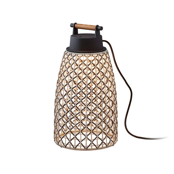 LED-bordlampe Nans M til udendørs brugLamperne i Nans-serien er designet af Joana Bover, grundlæggeren af det Barcelona-baserede firma med samme navn. Med sine designs ønsker designeren at formidle letheden i Middelhavets livsstil. Den udendørs bordlampe Nans har en skærm lavet af fletværk, som består af syntetiske fibre. Beskyttelsesklassen IP54 beskytter lampen mod fugt og støv, så den uden problemer kan bruges udendørs, f.eks. i pavilloner, på terrassen eller på altanen. Inklusive forsyningskabel og Schuko-stik. Via den integrerede kontakt på lampens hoved kan lyset ikke kun tændes og slukkes, men også dæmpes i tre trin (100%, 66%, 33%).