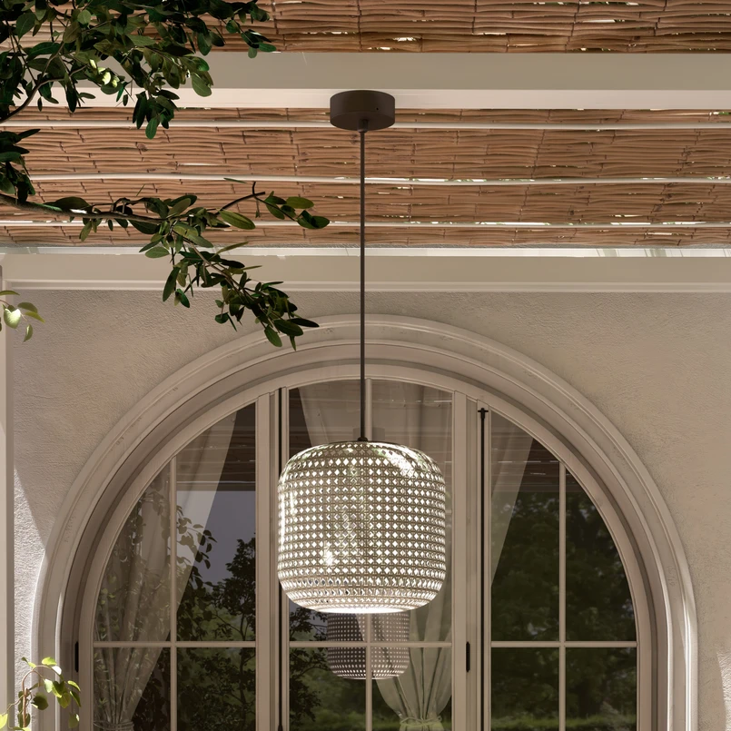 Designer udendørs pendel Nans A med vævet skærmDesignfirmaet Bover, der har base i Barcelona, legemliggør middelhavsstilen med sine Made in Spain-produkter. Pendellampen Nans er designet til udendørs brug, men kan også bruges indendørs. Den cylindriske skærm er vævet af en syntetisk fiber, hvor forskellige farvede tråde er vævet ind i hinanden. Pendlen er triac-dæmpbar, lysdæmperen er ikke inkluderet.