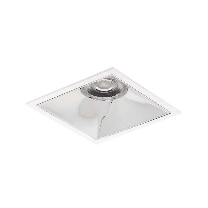 Apollo Midi LED-indbygningsspot, glat reflektor, firkantet, DALI-dæmpbar Det firkantede Apollo Midi LED-indbygningsspot er en LED-downlight, som leveres med DALI-dæmpbar forkobling. Den er udstyret med monteringsfjedre, så den kan monteres uden brug af værktøj. Downlightsættet er særligt systemeffektivt takket være en højglans, glat sølvreflektor med rotationssymmetrisk, dyb lysfordeling og en transparent plastafdækning for optimal lysfordeling. Takket være det store udvalg af modeller kan downlights i Apollo-serien opfylde en lang række belysningsopgaver, fra homogen belysning til præcis accentuering. Apollo-downlights er det ideelle belysningsværktøj for elektrikere, planlæggere og designere, de opfylder alle standarder, og deres anvendelsesmuligheder er uendelige - uanset om det er reception eller korridor, kontor, konferencelokale, butik eller museum eller privat bolig.