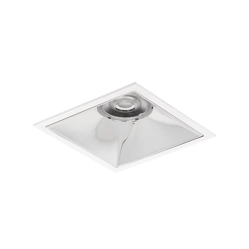 LED-indbygningsspot Apollo Midi, glat reflektor, kantet Apollo Midi er et LED-indbygningsspot, som leveres med en elektronisk, omskiftelig styring. Indbygningsspottet er udstyret med indbygningsfjedre og kan derfor monteres i loftet uden brug af værktøj. Det høje lysudbytte og den optimale lysfordeling garanteres af den glatte sølvreflektor med rotationssymmetrisk, smal- og bredstrålende lysfordeling og den transparente plastafdækning. Takket være det store udvalg af modeller kan de indbyggede downlights i Apollo-serien fra Brumberg løse en lang række belysningsopgaver, fra homogen belysning til præcis accentuering, og de er det perfekte belysningsværktøj for elektrikere, planlæggere og designere. Anvendelsesområder for Apollo Midi LED-indbygningsdownlight, som opfylder alle standarder, omfatter receptioner, korridorer, kontorer, konferencelokaler, butikker og museer - generelt farvegengivelsesindeks CRI > 90 - levetid L80/B10 ved 25 °C: 50.000 timer, levetid L80/B50 ved 25 °C: 50.000 timer - husmateriale: aluminium / glas / plast - tilladt omgivelsestemperatur (ta): -20 °C - +25 °C - med elektronisk forkobling, omskiftelig, ikke-dæmpbar