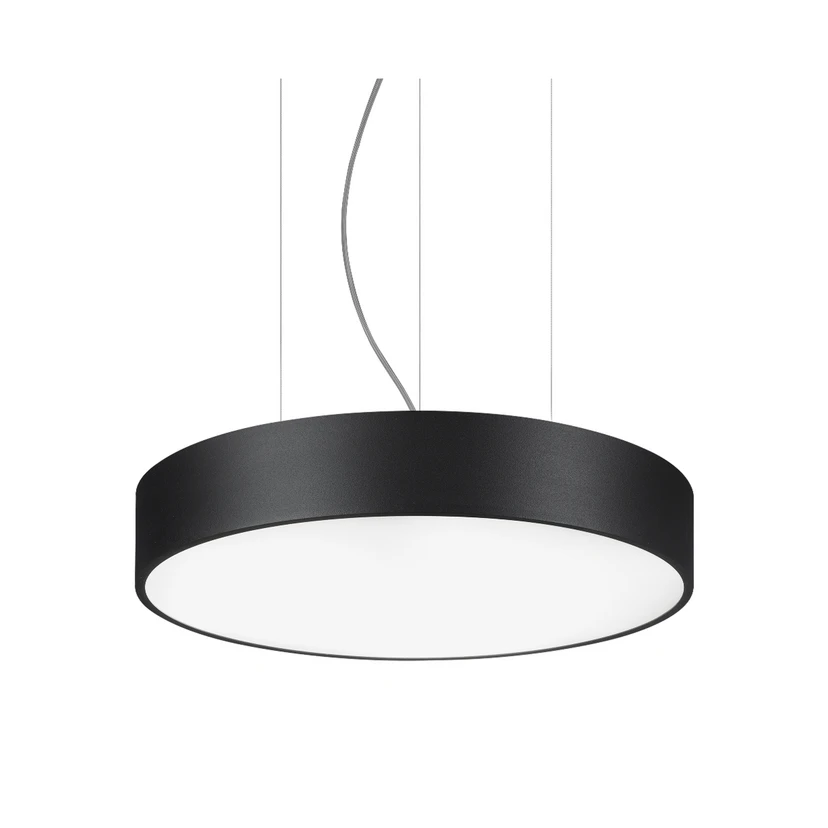 Biro Circle LED-pendel, 75 cm i diameter, med omskiftelig driftsenhed Den runde LED-pendel Biro Circle med en flad, rund skærm af aluminium udsender direkte lys nedad, som fordeles optimalt i rummet takket være en rotationssymmetrisk, dyb lysfordeling og en opalhvid plastafdækning. Den er udstyret med et omskifteligt kontroludstyr. Ikke kun kontorer eller mødelokaler, men også mange andre kommercielle områder kan belyses effektivt med pendelarmaturet af høj kvalitet fra BRUMBERG - generelt farvegengivelsesindeks CRI > 80 - levetid L70/B50 ved 25 °C: 50.000 timer, levetid L80/B50 ved 25 °C: 50.000 timer - husmateriale: aluminium / stål / plast - tilladt omgivelsestemperatur (ta): -20 °C - +25 °C - med elektronisk forkobling, omskiftelig, ikke dæmpbar