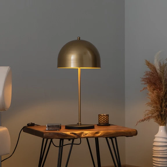 Can NT-134 bordlampe, guld, halvcirkelformet skærm