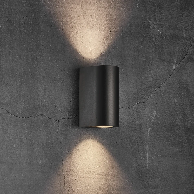 Canto Maxi 2 udvendige væglampe lavet af sprøjtestøbt aluminium er et kryds mellem en kuboid og en cylinder. Som behersket og enkelt designet er, kan lampen fra væglampen være dekorativ. I alt to GU10-lamper er velegnede som lyskilder, afhængigt af dit valg.