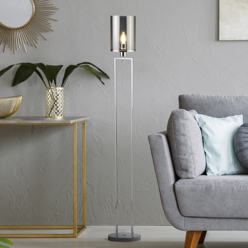 Catalina gulvlampe, glas, krom/røgfarvet, E27, 144 cm