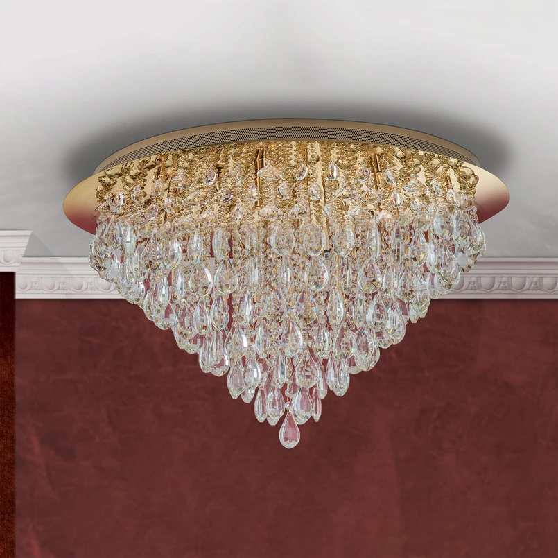 Celeste loftslampe med K9-krystaller, Ø75cm, guld