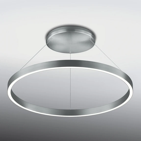 Circle cirkulær LED-loftlampe i elegant mat nikkel Den ringformede Circle LED-loftlampe imponerer med sin geometriske form. Det energibesparende armaturs harmoniske design har trods alt ingen forstyrrende hjørner eller kanter. Enhver, der ønsker at indrette sig efter reglerne for den høje kunst feng shui, vil derfor også sætte pris på dette armatur takket være dets afrundede form. Derudover giver Circle loftlampen direkte og indirekte lys takket være dens opadgående og nedadgående lysfordeling. Lyset kan også dæmpes ved hjælp af en bagkantstyret dæmper for at give endnu mere stemningsfuld belysning. I mat nikkel ser LED-lampen både cool og moderne ud på samme tid. Som en energieffektiv loftlampe kan Circle også installeres i ethvert rum, da den aldrig trænger sig på trods af sin afrundede raffinement. I stedet tilpasser lampen sig med sin enkle elegance til en lang række forskellige indretningskoncepter.