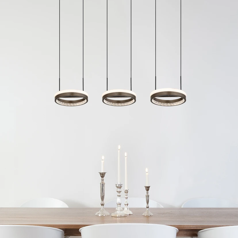 Della LED-hængelampe, længde 82 cm, mørkegrå, metal, 3 lyskilder