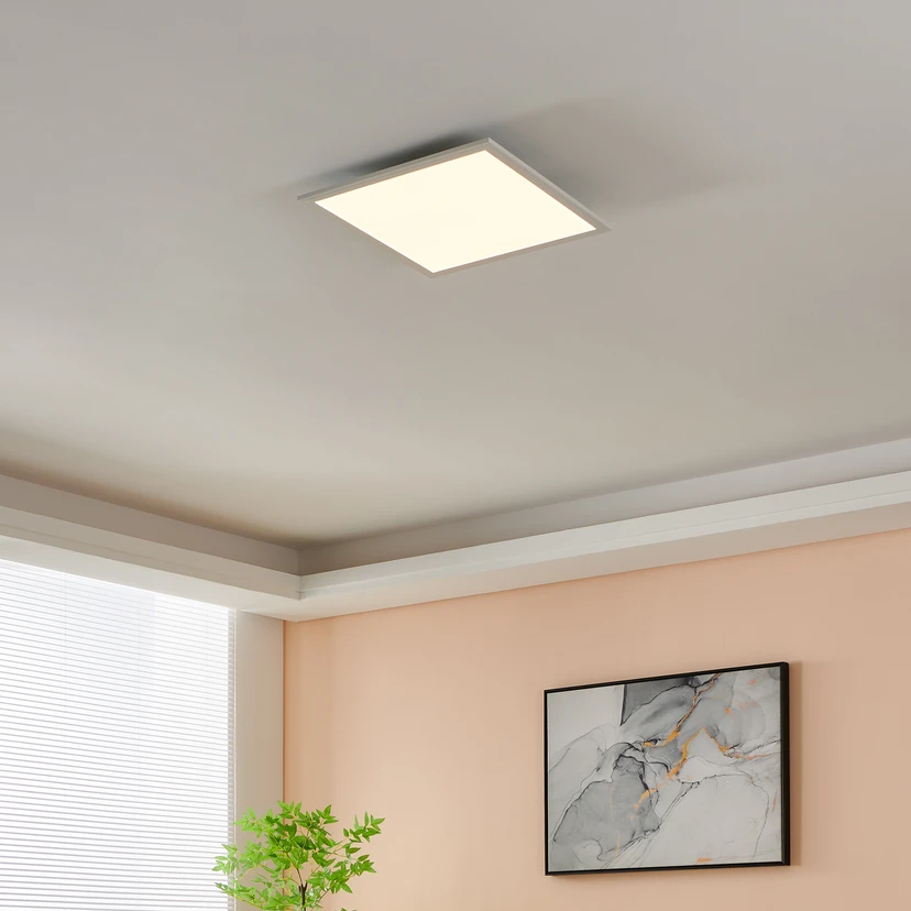 EGLO connect CCT LED-loftslampe - firkantet panel med hvid lysstyring Denne LED-loftslampe med en slank, firkantet aluminiumsramme er enkel i designet og alsidig i lysstyringen og er ideel til generel belysning af store områder i mange miljøer. De integrerede LED'er kan nemt styres med din egen smartphone/tablet med den passende app via Bluetooth. Farvetemperaturen kan indstilles i et spektrum fra varm hvid til dagslys hvid, og kontinuerlig dæmpning er også mulig. Funktioner / kompatibilitet - moderne Bluetooth mesh-teknologi med beskyttet netværk og transmission af kommandoer mellem enheder - kan styres med den gratis Smart Control-app fra AwoX (tilgængelig til iOS og Android) - kan styres med den matchende EGLO connect-fjernbetjening (medfølger ikke) - dæmpbar - hvid lysstyring: varm hvid (2.700 K) - dagslys (6.500 K)