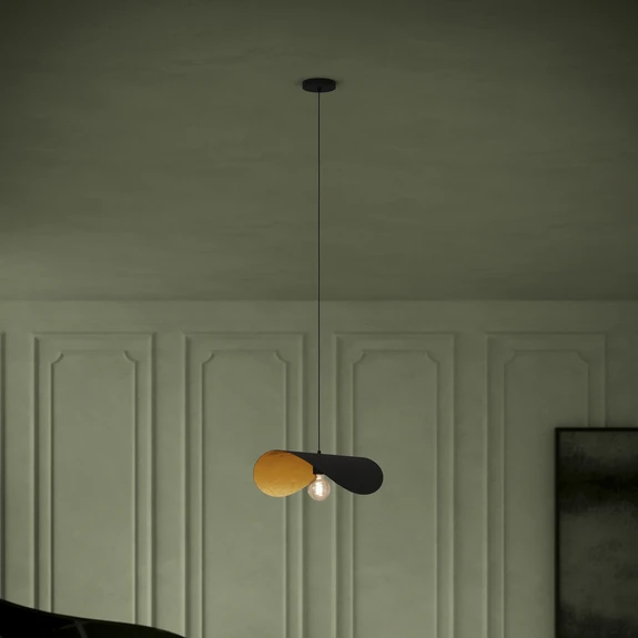 Hængelampe Saceda i elegant sort/guld