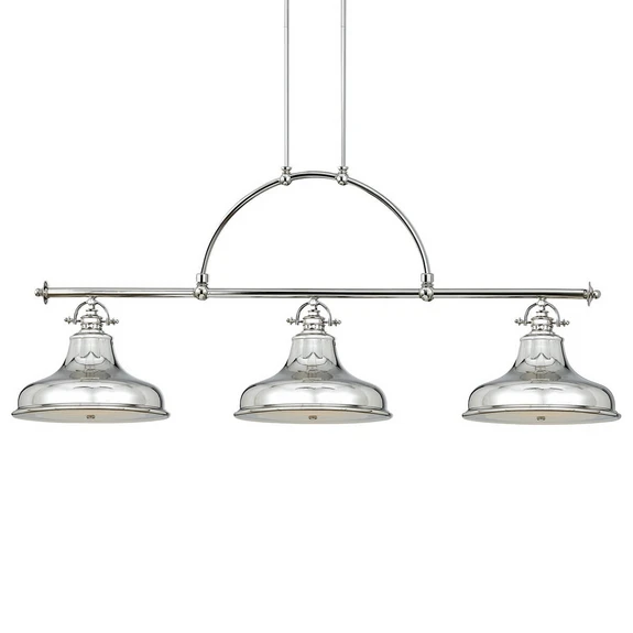 En speciel perle af industrielt belysningsdesign er den tre lampe Emery vedhængslampe i klassisk amerikansk stil. B. sikrer tilstrækkelig belysning i spisepladsen, det være sig over bordet eller som en lyskilde over køkkenbordet.