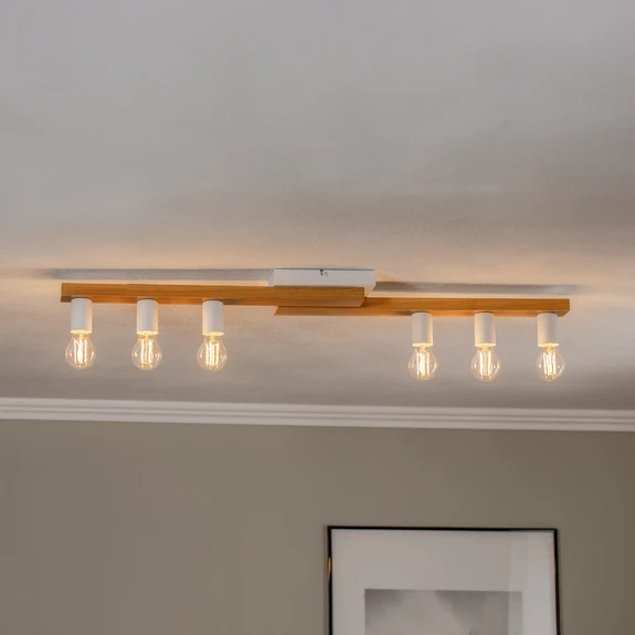 Envostar loftlampe Laurent, træ/hvid, 6 lyskilder