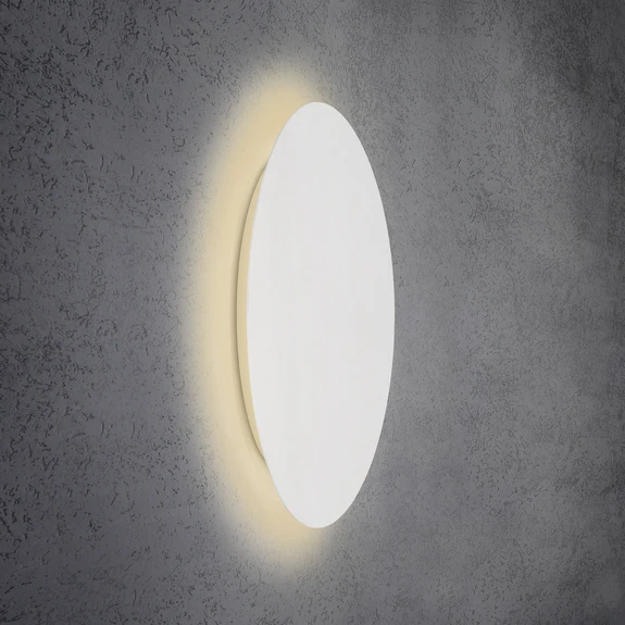 Med Blade LED-væglampen tilbyder producenten Escale en behagelig lyskilde til moderne interiør. Lysemissionen er udelukkende indirekte. De varmhvide LED'er er fuldstændig afskærmet på rummets side; deres lys udsendes bagud eller reflekteres der, så der skabes en diffus lyskorona på væggen. Selve væglampeens udseende bestemmes af dækslet, der er udformet som en flad, cirkulær skive af mat hvid aluminium, som fylder hele væglampens front.