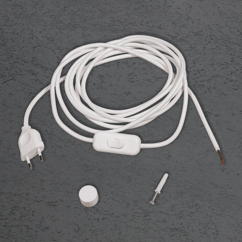 Hvis der ikke er 230 V-output tilgængelig på det ønskede sted, kan væg- og loftsbelysningen i Blade and Blade Open-serien fra Escale leveres via dette kabel. Den er udstyret med et stik og har en tænd / sluk-kontakt.