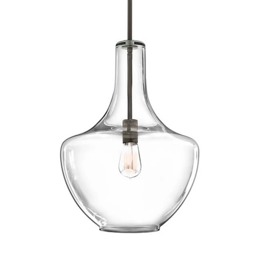 Denne hængende lampe fanger straks øjet takket være den smukke form på glasskærmen. Glasset har et let mønster, der næppe er synligt med det blotte øje, men giver lyset en særlig glans. Suspensionen er bronzefarvet og udstyret med en fatning af samme farve, som er fokus for interesse gennem det gennemsigtige glas. Det tilrådes at udstyre denne fatning med en trendy vintage lampe, der gør det overordnede udseende af Everly pendellampen endnu smukkere.