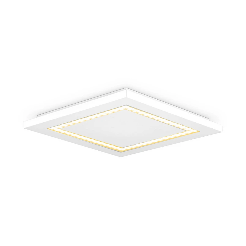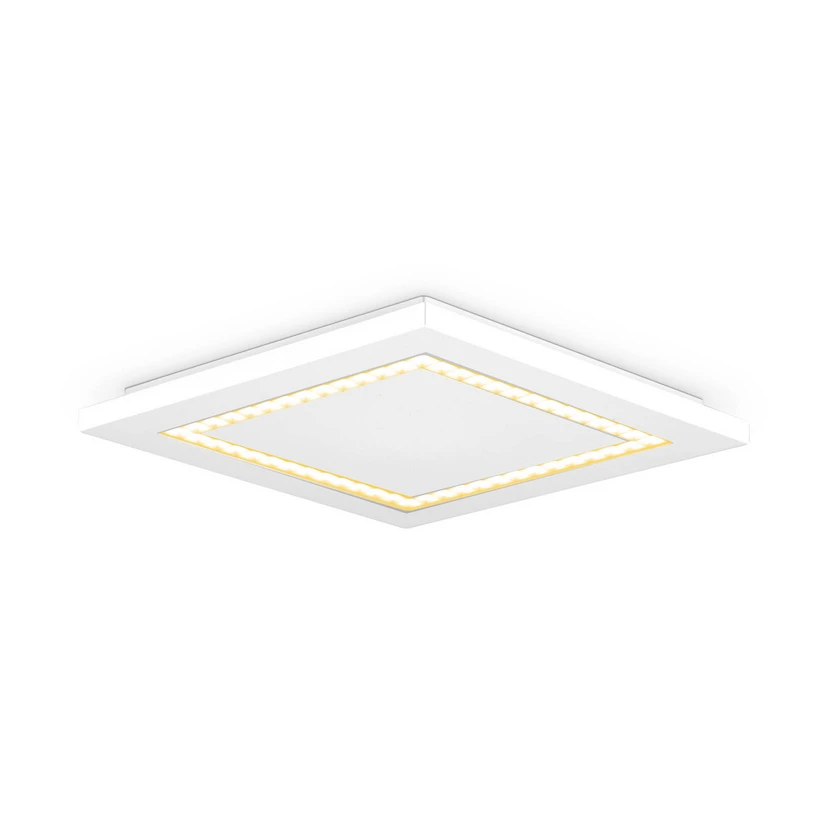 Den hvide, kantede LED-loftlampe ALQ er et overflademonteret panel lavet af hvid plastik, som kan bruges i loftet eller på væggen. Samlingen er optisk elegant uden synlige skruer. Det meget vidstrålede LED-panel er ideelt til generel belysning i arbejdsrum, gange, kontorer, receptioner og korridorer. Armaturet er udstyret med et LED-kontroludstyr, der muliggør ekstern dæmpning via fasestyring eller fasestyring.
