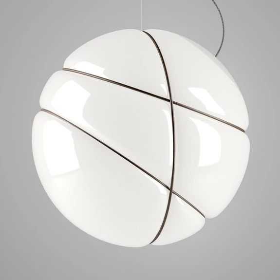 En ægte perle til indendørs brug, som har en dekorativ effekt, selv når det er slukket - det er Armilla glas pendellampe lys. Designet af en rund, hvid glasskærm med en blank overflade og tre omgivende smalle metalringe blev skabt af Lorenzo Truant til den italienske producent Fabbian . Vedhængslyset får sin form ved mundblæser glasset i en rund form og presning af de polerede metalringe i det stadig bløde glas. Inde er der plads til en E27 LED-lampe, der gør Armilla til en jævn lysende sfære.