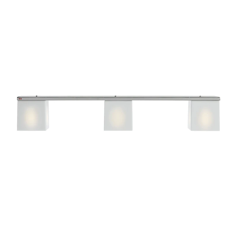 Cubetto loftlampe er enkel og alligevel elegant. Skærmene i den kendte kubiske form er lavet af glas, der er sandblæst i området omkring åbningerne til GU10-lamperne. Det lange loftbeslag i metal har en blank krombelægning.