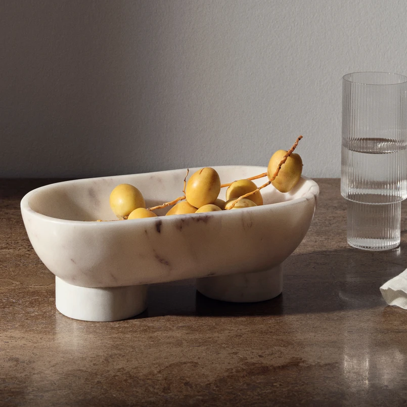 Alza marmorskål fra ferm LIVING Ved at udfordre den klassiske skåls udtryk har producenten skabt Alza-skålen med et hævet design på et robust plateau. Dette design er både let og tungt og kombinerer kontraster og samler dem i en smuk marmorskål. Bemærk: Marmor er et naturprodukt. Afvigelser fra produktbilledet er derfor mulige.