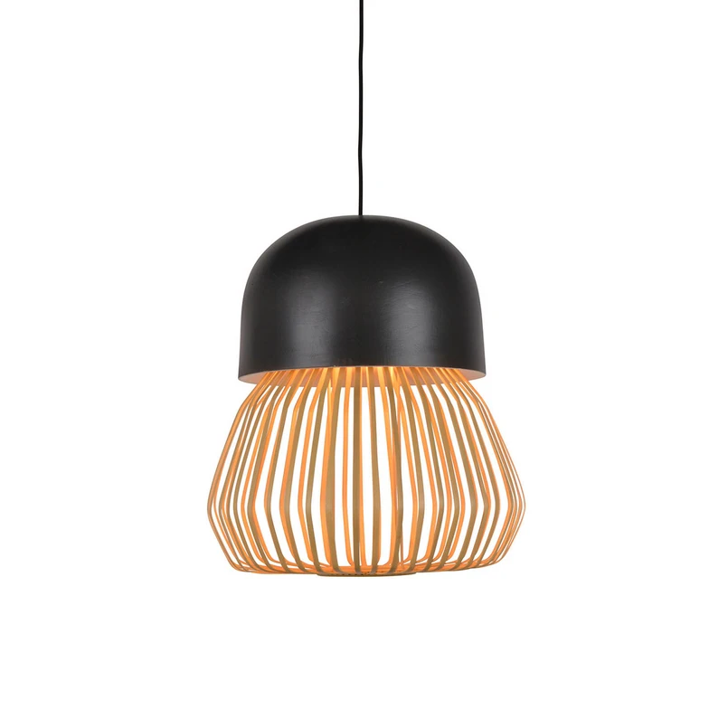 Designeren Arik Levy har kombineret let bambustræ med mørkt metal til ophængslampen Anemos, hvorved der skabes en lampe, der inkorporerer både lethed og en vis vægt og tilstedeværelse. Paraplyen lavet af bambusstrimler er designet som en slags bur eller kurv. Lyskilden er stadig ikke synlig, da den er placeret i den store mørkegrå kuppel.