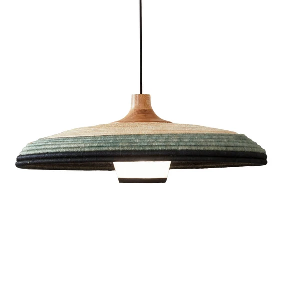 Grass M pendellampen er designet af produktdesigner Jette Scheib og udtrykker den ro, der afspejles i den traditionelle væveproces, gennem sit harmoniske design. Lampens runde skærm består af de naturlige materialer rattan og abacá og er opdelt i striber i forskellige varme farver. De minder om de marker, hvor materialet til kurvefletningen vokser. Lampen sætter en attraktiv, naturlig accent i stuen og skaber en hyggelig atmosfære. Græs M kan f.eks. placeres flot over spisebordet eller stuebordet.