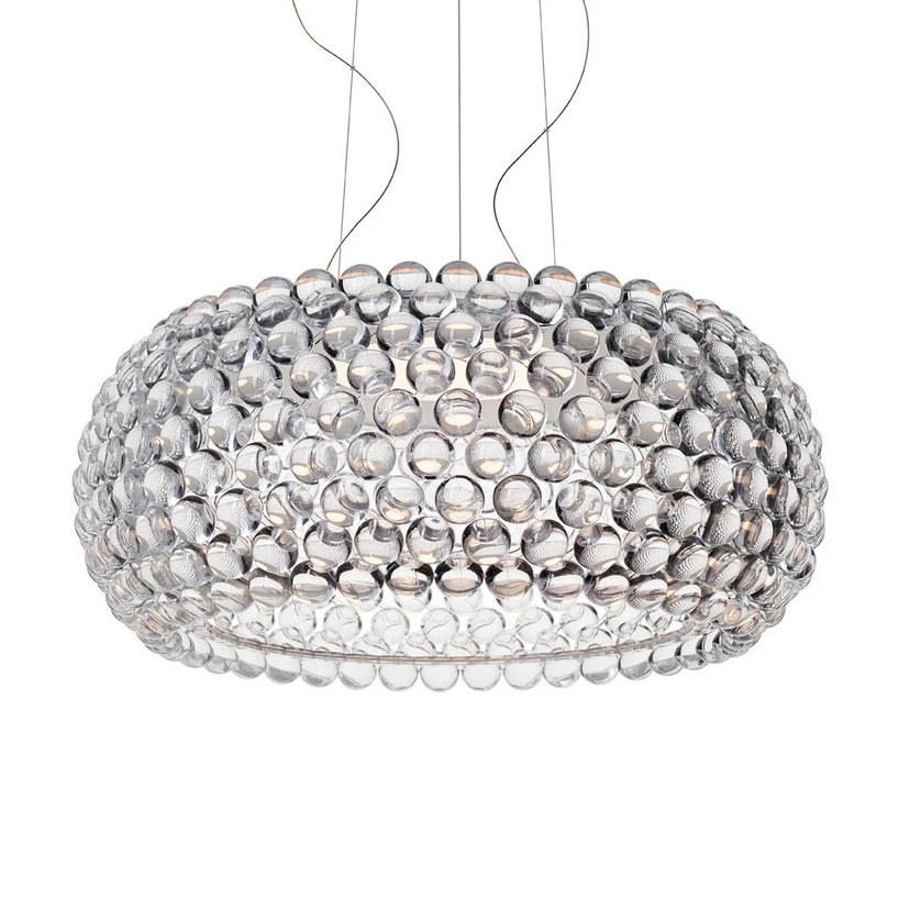 Den imponerende LED-pendellampe Caboche Plus Grande imponerer med sit elegante design og spændende lyseffekter. Lampeskærmen er dækket af gennemsigtige perler og minder om et elegant smykke. Denne forening blev også ledet af de to designere Patricia Urquiola og Eliana Gerotto, der ønskede at skabe en lampe baseret på modellen af et perlearmbånd. Designet, der blev skabt for den italienske lysproducent Foscarini , er nu en ægte klassiker.