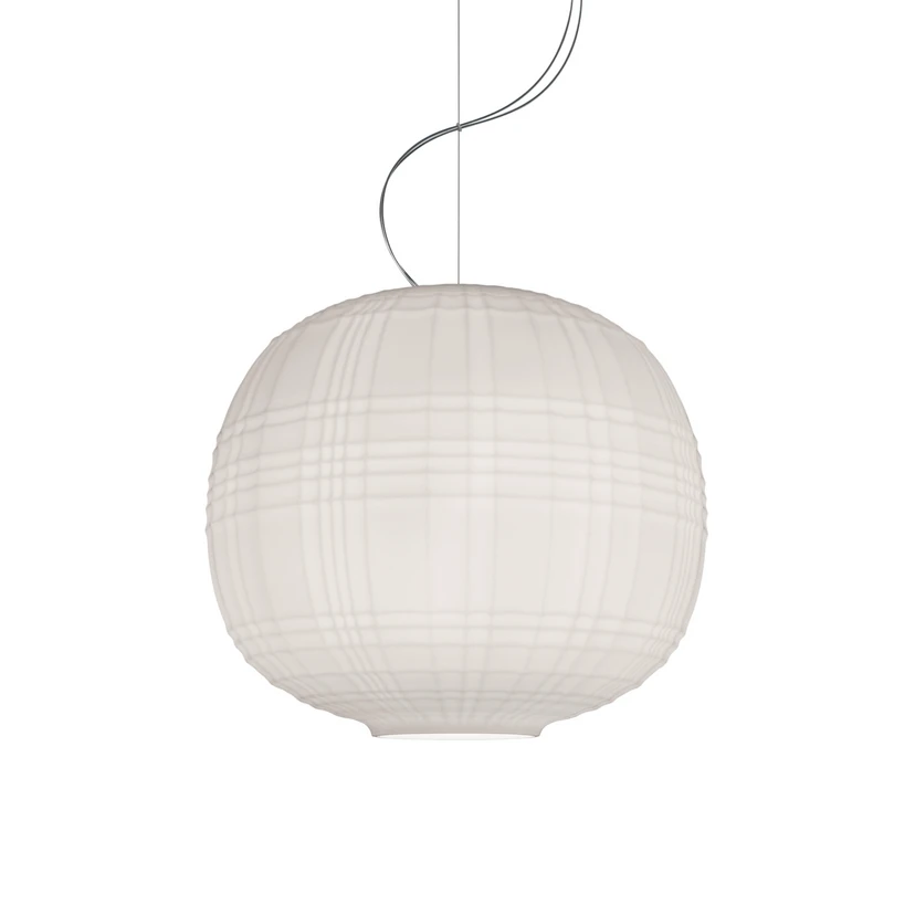 LED-pendellampe Tartan af mundblæst glas, eksternt dæmpbarLED-pendellampen Tartan er fremstillet af mundblæst glas og har linjer, indrykninger og folder på toppen, der giver den et særligt udseende. Der blev anvendt en særlig fremstillingsteknik for at skabe effekten af skotsk skotsk skotskternet, som er det karakteristiske mønster på skotske kilts. De vandrette og lodrette linjer sikrer også, at der skabes smukke lys- og skyggevirkninger i boligen.Til produktionen er hængelampen blæst i en særlig form med et skotskternet mønster. Desuden er overfladen af skyggen blevet behandlet med syre, hvilket giver den et næsten stoflignende udseende. Nederst er skærmen åben, så det varme lys stråler direkte ned mod gulvet. På grund af den matte skærm dæmpes lyset også og stråler ud til siderne og opad. Tartan er derfor særligt velegnet til belysning af en stue eller et spisebord. Med et eksternt dæmpningssystem (On-Off/Push/DALI) kan lysstyrken også reguleres.Designerne Ludovica og Roberto Palomba grundlagde deres eget studie i Milano i 1994 og arbejder bl.a. inden for arkitektur, produkt- og interiørdesign. De designer produkter, der indgår i en dialog med ejeren og overbeviser med deres holdbarhed. I forbindelse med Tartan pendellampen eksperimenterede de med de forskellige designmuligheder, som mundblæst glas giver. Designerne har allerede designet adskillige produkter for den italienske belysningsproducent Foscarini og har modtaget vigtige priser.