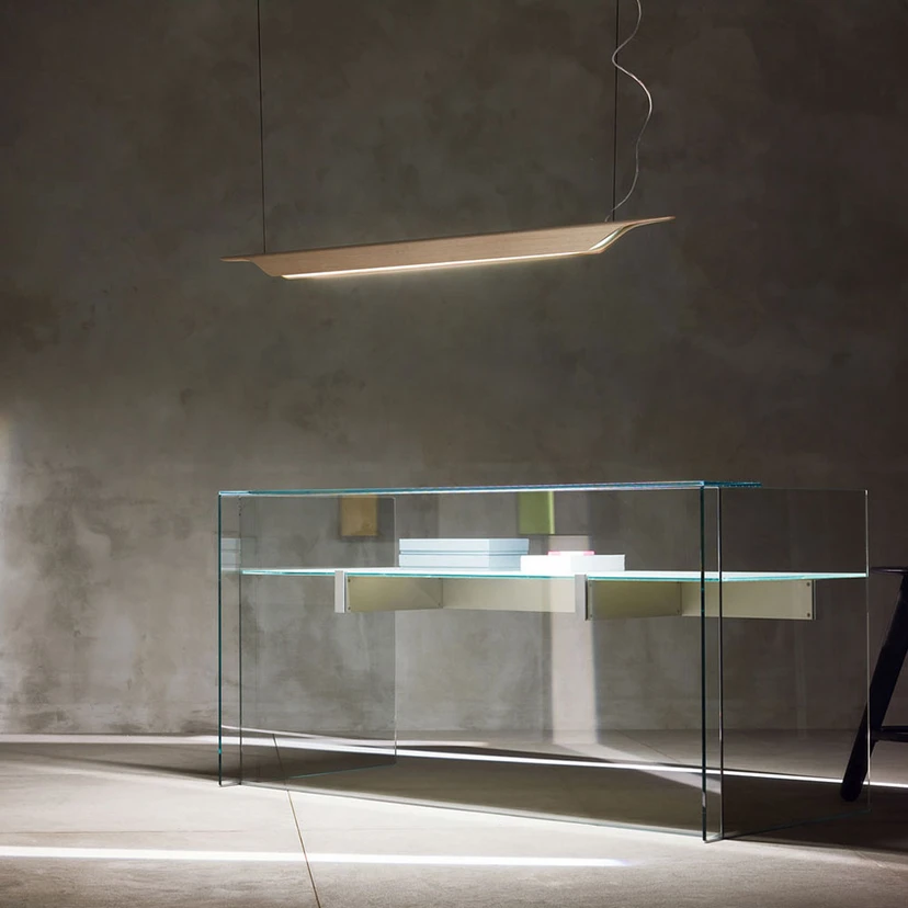 Varmhvide LED'er er skjult bag et satincover af PMMA. Det jævnt brækkede lys giver en behagelig og samtidig effektiv belysning over et bord eller en disk i et privat område, i en restaurant eller i en reception på et hotel.