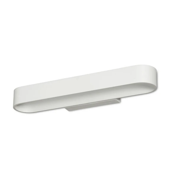 Gala LED-væglampe i hvid, indirekte lysudsendelse opad og nedad Gala LED-væglampens krop har et enkelt, moderne design i form af en bred oval lavet af aluminium. De varmhvide LED'er er placeret på bagsiden af frontsektionen, så lyset udsendes i retning af væggen, og lyset udsendes blidt og blændfrit opad og nedad. Gala er en behagelig lyskilde til moderne møbleringskoncepter i private, offentlige og kommercielle interiører, især langs korridorer eller ved siden af døre - God farvegengivelse CRI >90 - Minimal blænding: UGR <19