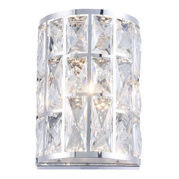 Det er ikke kun overbevisende med sit lys - Gelid-væglampen består af mange individuelle krystalglasruder, der, når de sættes sammen, danner den halvcirkelformede lampeskærm. Lyset skinner ud indefra og brydes i de krystallinske skiver. Dette skaber en stilfuld og elegant glød, der gør Gelid-lampen så speciel. Den er ideel som et visuelt højdepunkt som et lille ekstra lys, f.eks. I stuer, soveværelser eller i gange.
