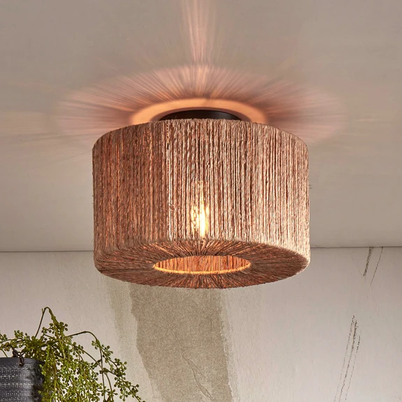 Rund jute loftlampe Iguazu Iguazu er opkaldt efter vandfaldene på grænsen mellem Brasilien og Argentina, som er de største vandfald i Sydamerika og en populær turistattraktion. Ligesom vandet strømmer nedad, gør de fine linjer i den runde jute-skærm det også. De fleste af skærmene er håndlavede af håndværkere i Vietnam, og til loftlampen er der brugt den populære naturfiber jute, som er kendetegnet ved sine særlige egenskaber. Ud over sin robusthed anses jute for at være meget strækbar og rivefast, men bæredygtige aspekter bør også fremhæves. Det vigtigste dyrkningsområde er frugtbar alluvial jord, som gør, at den krævende juteplante ikke behøver at blive gødet. Det er en stor fordel for miljøet og landmændene sammenlignet med intensiv bomuldsdyrkning. Disse aspekter passer ind i grundtanken hos det hollandske mærke Good & Mojo, som har til formål at skabe bæredygtige lamper med sin kollektion og samtidig gøre noget godt.