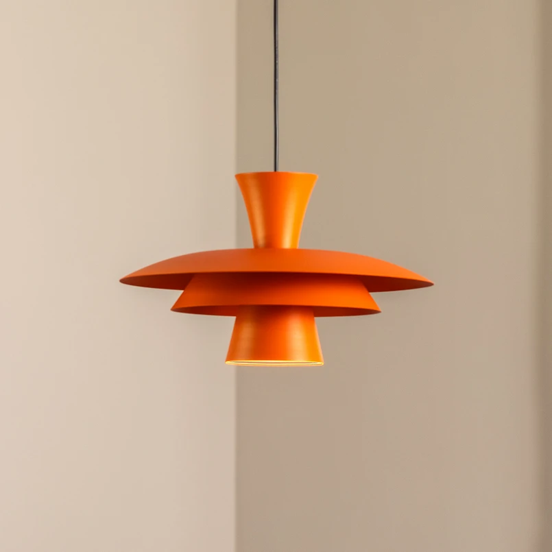 Hængelampe Plato, orange, metal, Ø 38 cm, E27