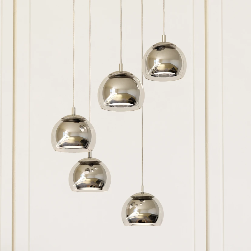 Hængelampen Rocamar 1 kombinerer moderne design med materialer af høj kvalitet som glas og stål. Kombinationen af kromfarvede og klare elementer giver lampen en tidløs elegance, der passer perfekt ind i forskellige indretningsstilarter. Med sine 5 lyskilder sikrer den en jævn og stemningsfuld belysning, der skaber en imponerende atmosfære i både stuen og spisestuen.
