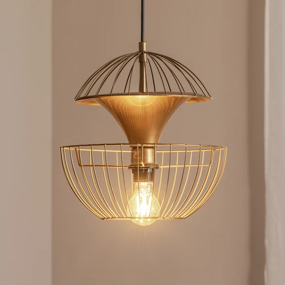 Hængelampe Telmander 11410, guldfarvet, metal, Ø 30 cm