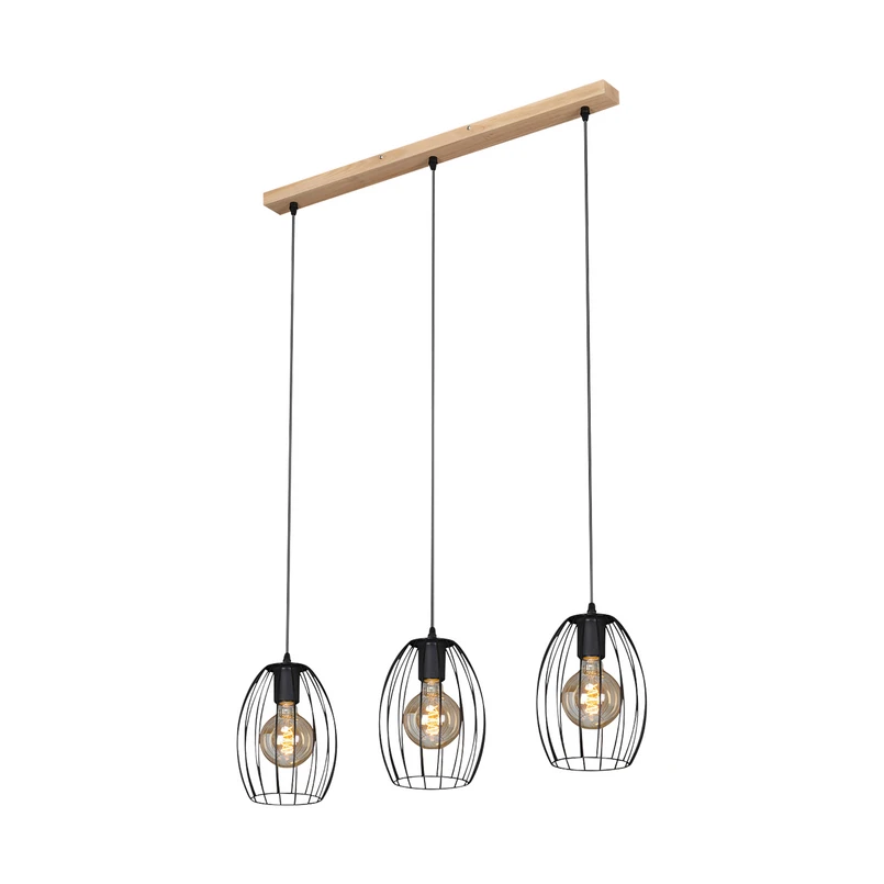 Hængelampe Waktu Vintage, sort/træ, 3 lyskilder