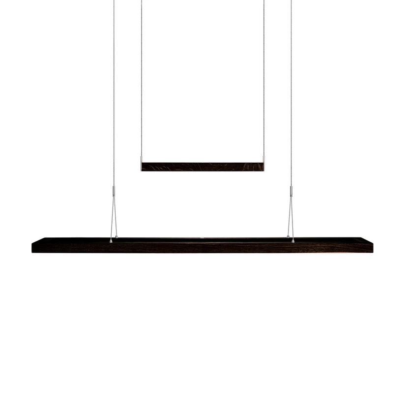 LED pendelarmatur Amalia - to træpendler, uplight og downlightEn stor, rektangulær træramme med LED'er, der stråler nedad, og en mindre træbjælke, der tjener som modvægt og rummer LED'er, der stråler opad, kendetegner LED pendelarmaturet Amalia med deres naturlige udseende. Baldakinen i mat børstet nikkel sikrer også, at Amalia kan kombineres perfekt med moderne indretningskoncepter. Ophænget med slanke kabler, modvægt og afvisere, der er skjult i baldakinen, gør det muligt at justere højden på pendlen. Separate berøringssensorer for det øverste og nederste lys giver mulighed for individuel justering af lysstyrken - bæredygtigt træ fra FSC-certificerede leverandører - god farvegengivelse: CRI > 90 - dim-to-warm: lysdæmpning ændrer lysfarven fra universalhvid (4.000 K) med høj lysudbytte til varm hvid (2.200 K) med lavt lysudbytte - fremstillet i Tyskland