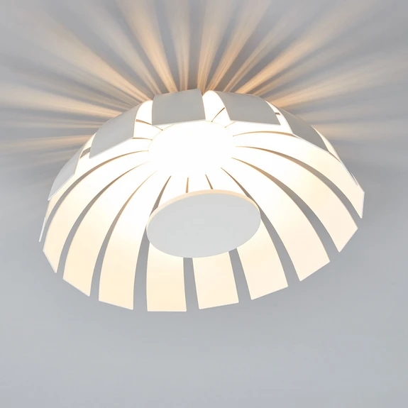 Selv når den ikke er tændt, ser Loto-armaturet, der er lavet af metalstrimler, ud som en blomst, men hvis du tænder den, blomstrer den bogstaveligt talt i ordets rigtige forstand: På grund af den indirekte belysning fra de integrerede lysdioder og naturens lampeskærm, refleksioner svarende til solstråler vises på væggen eller loftet. Loto kan monteres i loftet såvel som på væggen. Med flere lys i forskellige størrelser og farver kan du endda skabe et ægte lyskunstværk.