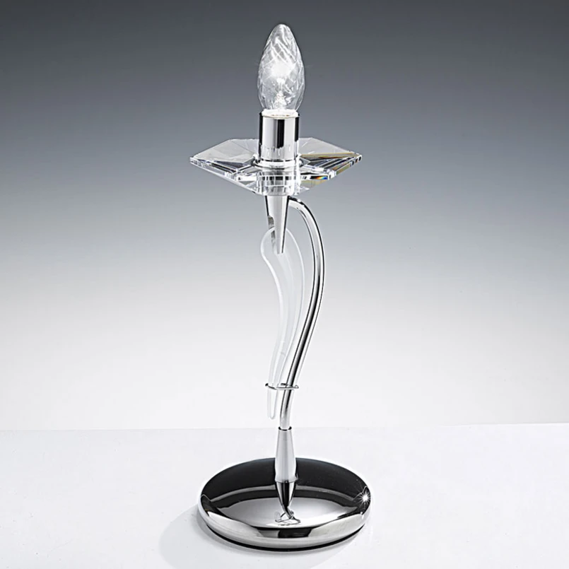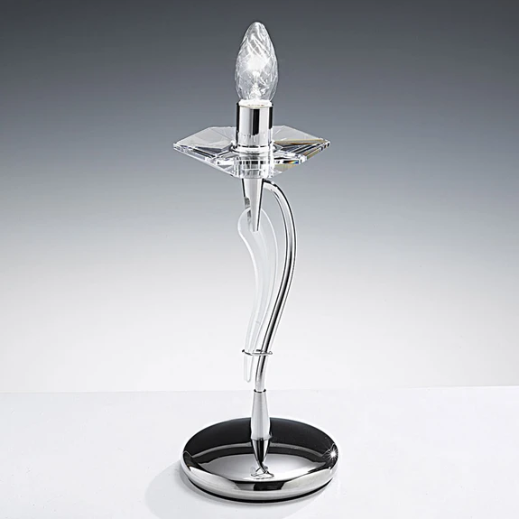 Denne unikke bordlampe beviser, at stil og modernitet ikke behøver at være i modstrid med hinanden. Det moderne, lineære design lavet af meget transparent glas og krom danner en vidunderlig kombination med mousserende, skåret glas. Udstyret med en klar stearinlys, bliver en strålende drøm, der giver stilfuld belysning.