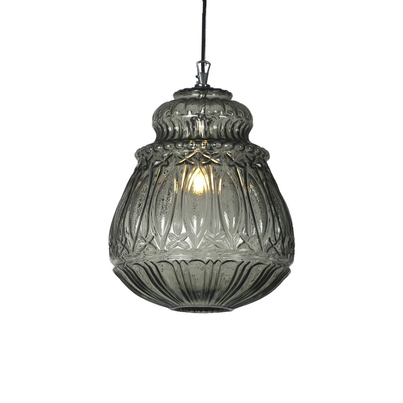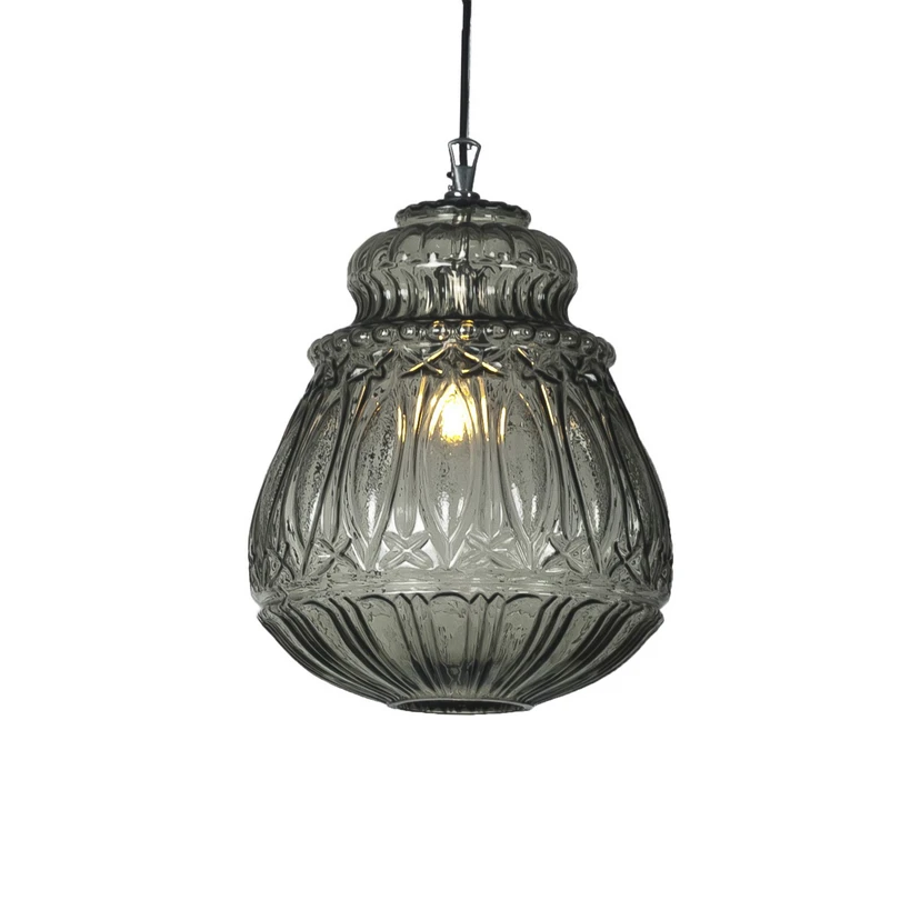 Karman hængelampe Ginger, røggrå, højde 37 cm, glas, E27